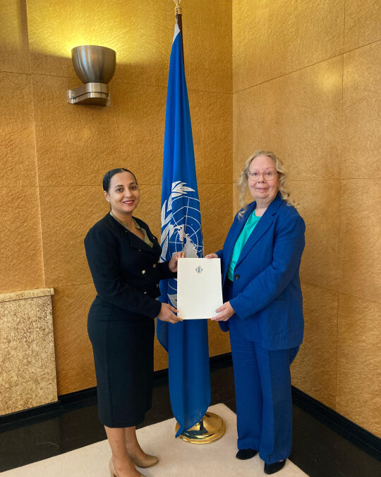 This appointment reinforces Seychelles’ commitment to active participation in multilateral diplomacy. At the credential-presentation ceremony, Ambassador Mangroo and Director-General Valovaya discussed a range of issues of national and international significance, including climate change financing, women’s representation on the global stage, trade, sustainability of development goals and human rights issues.